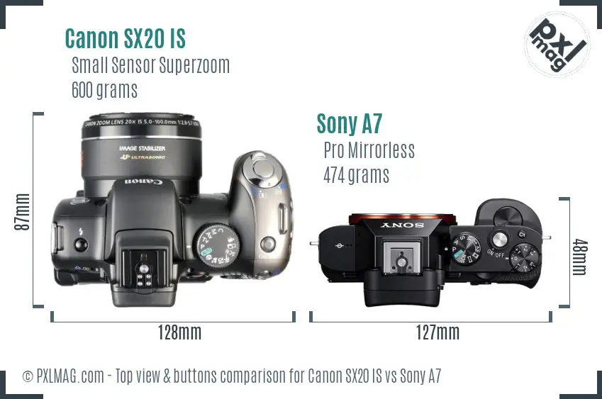 Canon SX20 IS vs Sony A7 Key Specs