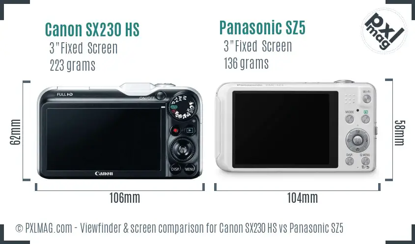 Canon SX230 HS vs Panasonic SZ5 Screen and ViewFinder