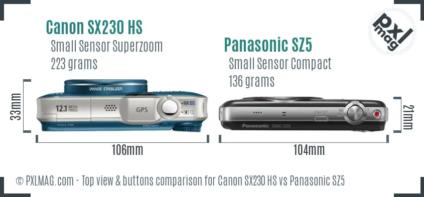 Canon SX230 HS vs Panasonic SZ5 Physical Comparison