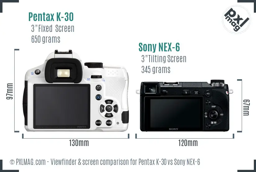 Pentax K-30 vs Sony NEX-6 Screen and ViewFinder