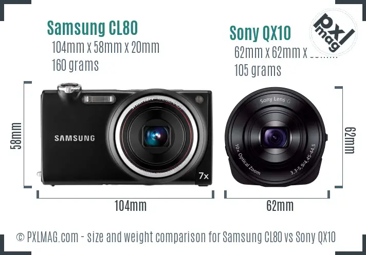 See the Samsung CL80 versus Sony QX10 in the new Camera and Lens Size Comparison Tool.